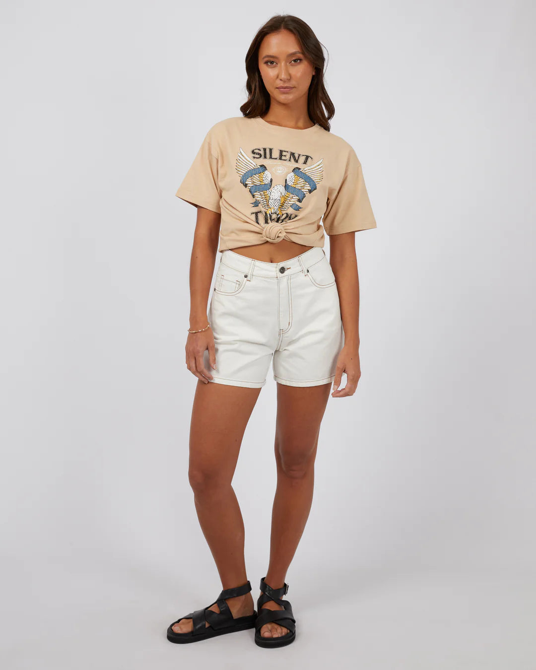 Update your go too graphic tee with the Silent Theory Spirit Tee. Made from a soft cotton jersey fabrication, this tee features a loose fit, custom eagle graphic and ability to easily tie. Pair back with any Silent Theory Denim and sneakers for an easy on the go look.